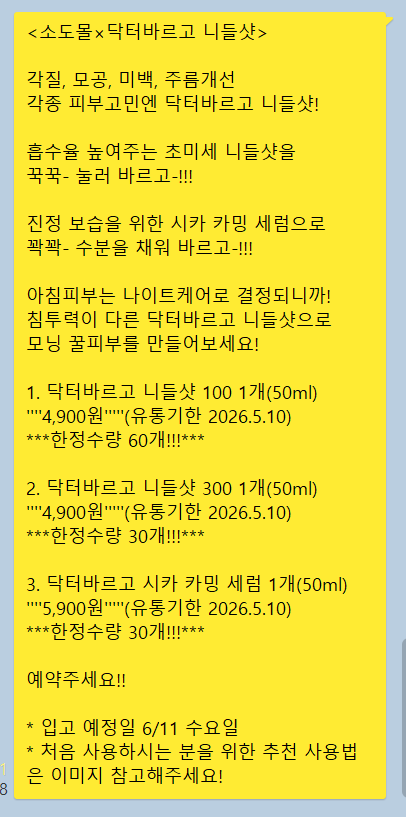 오늘의 공동구매 물품 오늘의 공동 구매 예약 상품 by 소도몰 가산G밸리점 2025. 6. 2. 반응형 🧡매일 매일 오후 3시,5시,7시 특가 상품이 쏟아집니다🧡 🧡🧡06/02일 월요일 공동 구매 예약 상품🧡🧡 ☆06/03일 화요일 오후 1시 예약 마감☆ 예약 하러 가기➔ 예약 하러 가기➔ 반응형 공유하기 게시글 관리 소도몰 가산G밸리점 '오늘의 공동구매 물품' 카테고리의 다른 글 지난 공동구매 상품(3월) (0) 2025.03.03 지난 공동 구매 예약 상품(02월) (1) 2025.02.17 관련글 지난 공동구매 상품(3월) 지난 공동 구매 예약 상품(02월)