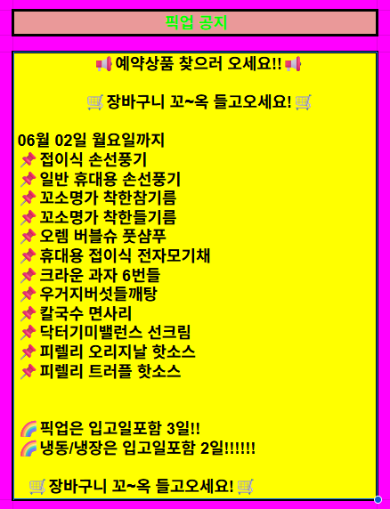 | 입고 예정일 | 🧡🧡 입고 예정 상품 🧡🧡 |